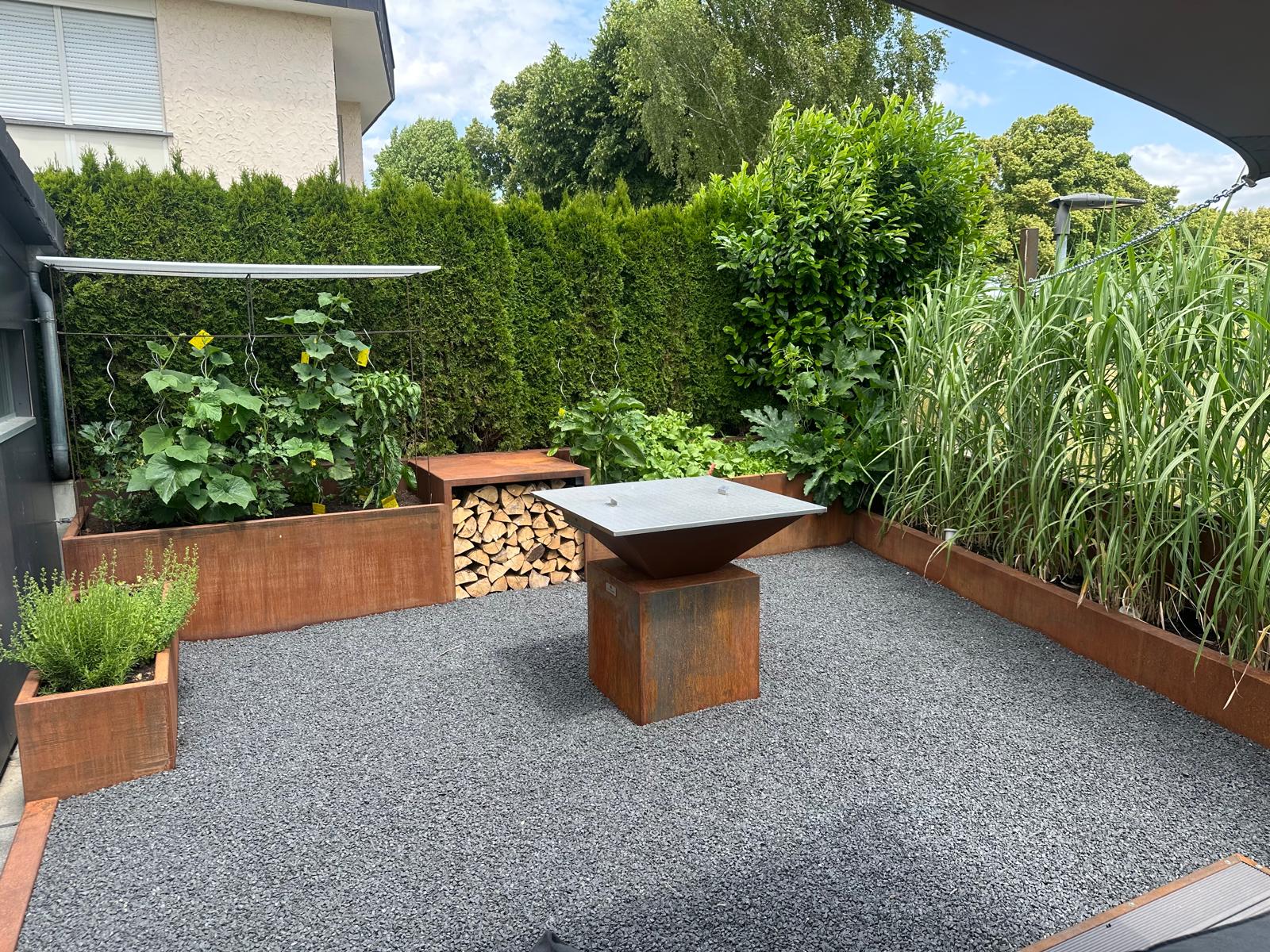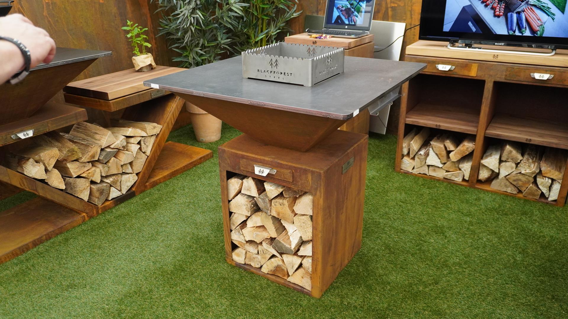 Die Kombination aus hochwertigem Cortenstahl und dem praktischen Design von Blackforeststeel-Produkten verbindet die natürliche Schönheit des Materials mit der Tradition und Qualität des Schwarzwaldes, was ein einzigartiges und ansprechendes Produkt ergibt, das sowohl funktional als auch ästhetisch ist. Die erstklassige Verarbeitung von Cortenstahl gewährleistet Langlebigkeit und Widerstandsfähigkeit gegenüber den Elementen, da die Rostschicht eine schützende Barriere bildet und dem Material eine einzigartige Patina verleiht. Das integrierte Holzlager sorgt für ordentliche Aufbewahrung des Grillholzes, während die Auffangschublade für Asche eine einfache Reinigung ermöglicht. Der hochwertige CortenGrill von Blackforeststeel ermöglicht nicht nur die Zubereitung köstlicher Gerichte im Freien, sondern wertet auch Ihren Außenbereich mit Stil und Funktion auf, damit Sie unvergessliche Grillmomente erleben können.